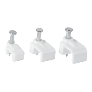 Las grapas para cable fabricadas en polietileno son una solución práctica y duradera para asegurar cables planos en superficies de concreto.,Su diseño con un clavo especial permite una fácil instalación sin necesidad de herramientas adicionales.,Son ideales para proyectos de cableado en interiores y exteriores, proporcionando una sujeción firme y segura.